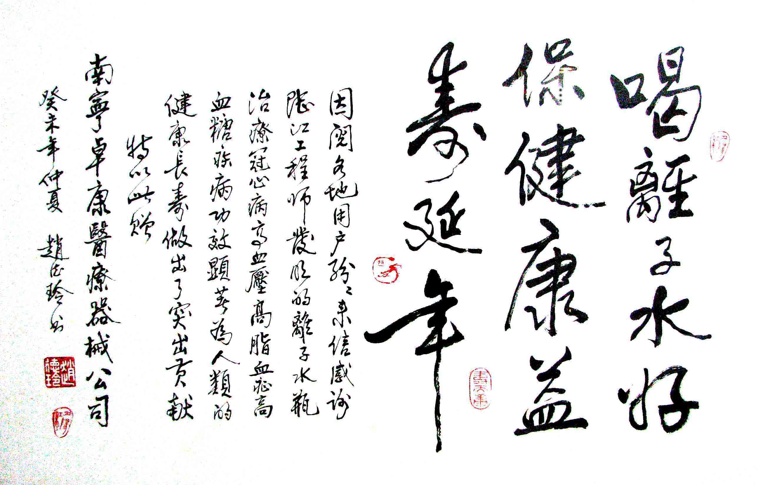 -----我是從事建筑的高工,本來(lái)沒(méi)有資格去攻克醫(yī)學(xué)難題,卻為了自身健康才扣響醫(yī)學(xué)的大門。由于我1990年患高血壓,因怕中風(fēng)才研究發(fā)明了離子水瓶,我把水處理成微小分子團(tuán)水,飲用后治愈了高血壓。便于1993年底送到三家省級(jí)醫(yī)院做臨床試用4個(gè)月。經(jīng)北京和廣西醫(yī)學(xué)專家鑒定:"降脂降壓效果好"," 能擴(kuò)大心腦動(dòng)脈流量,改善心腦電圖以及微循環(huán)","對(duì)治療心腦動(dòng)脈粥樣硬化、高血壓、高血脂有良好的醫(yī)療保健作用。""產(chǎn)品的技術(shù)性能和療效達(dá)到了同類產(chǎn)品的國(guó)內(nèi)領(lǐng)先水平,經(jīng)廣西醫(yī)學(xué)科學(xué)情報(bào)研究所檢索,未見(jiàn)國(guó)外有類似報(bào)道。"中國(guó)醫(yī)學(xué)科學(xué)院張正國(guó)教授從美國(guó)國(guó)立醫(yī)學(xué)圖書館數(shù)據(jù)庫(kù)存Medline檢索英俄文資料,均未見(jiàn)類似報(bào)告。2000年上市后,我為了對(duì)消費(fèi)者負(fù)責(zé)而繼續(xù)觀察研究,一直通過(guò)《信譽(yù)卡》和《質(zhì)量跟蹤調(diào)查書》向患者承諾療效,請(qǐng)用戶使用6個(gè)月后反饋效果。和脂壓患者飲用2至5個(gè)月內(nèi),消除癥狀,停服藥物,血壓正常;冠心病患者飲用3~5個(gè)月逐漸減輕至消除心絞痛、房顫等癥狀,不再服藥,飲用1年左右心電圖正常,經(jīng)冠脈造影掃描無(wú)明顯狹窄,表明冠心病痊愈。大量患者還反映許多衰弱器官被修復(fù),讓前列腺增生、慢性咽喉炎、慢性氣管炎、支氣管炎、慢性胃炎、腸炎和膽囊炎等不藥而愈;2型糖尿病患者是因?yàn)橐葝u衰弱致病,飲用該水半年至一年,逐漸減藥至停藥,血糖尿糖正常,真正治愈2型糖尿病。中風(fēng)后遺癥患者飲用六七個(gè)月,可逐漸減輕至消除肢體和語(yǔ)言障礙,表明飲用該水能讓壽命很長(zhǎng)的神經(jīng)元細(xì)胞逐漸修復(fù),奇跡般地恢復(fù)肢體和語(yǔ)言功能。飲用后還使胸腺和脾臟兩個(gè)重要的免疫器官被修復(fù)和增強(qiáng),產(chǎn)生免疫細(xì)胞多,提高了免疫力,使人不生病或少生病。自此, 飲用微小分子團(tuán)水創(chuàng)造了攻克冠心病、高(低)血壓和糖尿病三大醫(yī)學(xué)難題的奇跡。人們對(duì)此感到不可思議,但實(shí)踐是檢驗(yàn)真理的唯一標(biāo)準(zhǔn)。